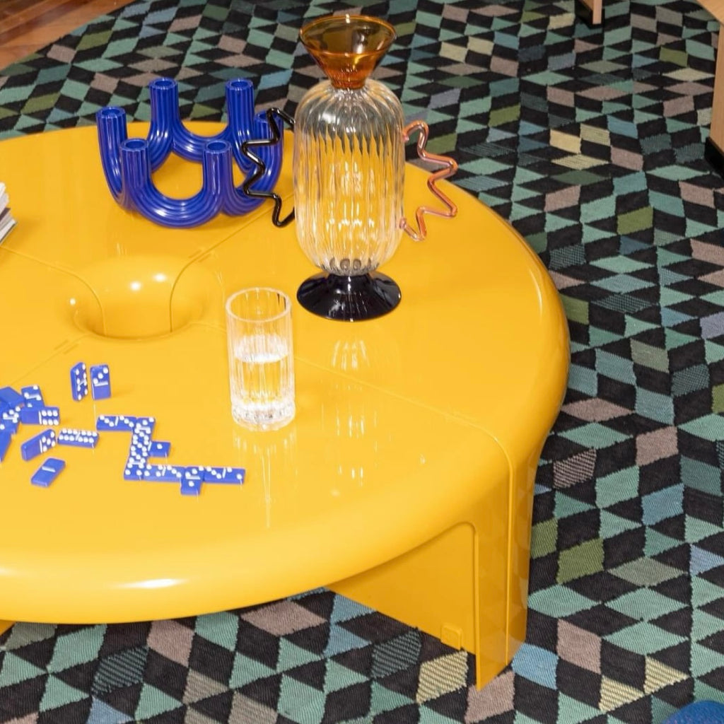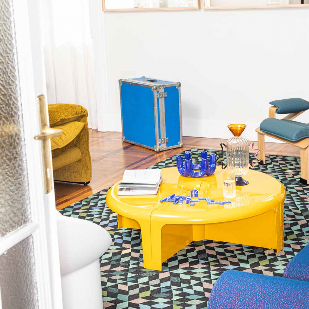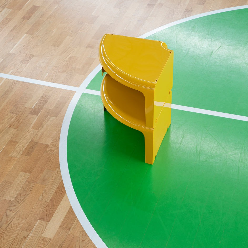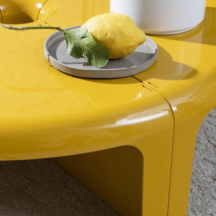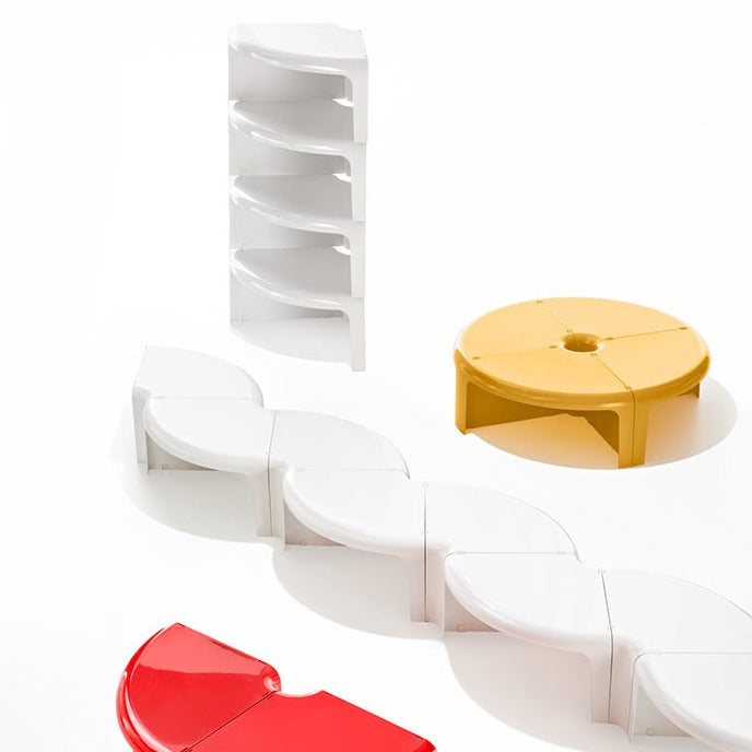 From the drawing board of Rodolfo Bonetto in 1969, 4/4 represents the typical multi-functional product that can easily adapt to setting and use, in this way allowing continually new interpretations of the spaces in which we live. Curving lines, glossy plastic and easy dovetailing turn the four elements making it up into a round coffee table, a serpentine table, a modular bookcase or even a corner shelving.