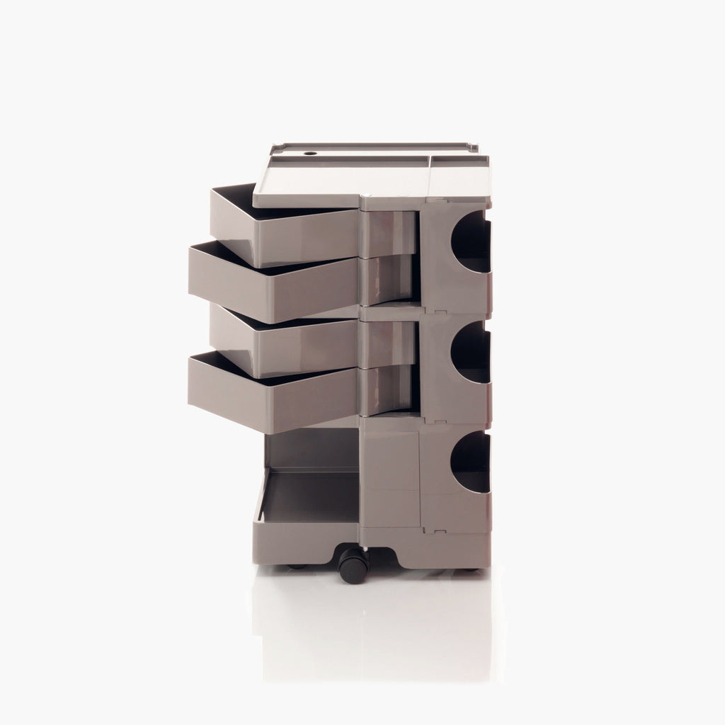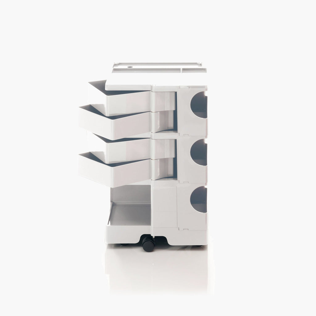 Boby is much more than a simple container: it is the trolley storage unit that made design history. Functionality and detail are its strong points which, together with an undeniably pop flavour, continue to make it the most popular storage trolley in creativity sectors as well as in the medical, and in the home. Designed with injection-moulded ABS plastic drawers and compartments that guarantee simple vertically modular solutions, Boby provides versatile customized storage capacity, while its polypropylene casters guarantee full mobility.