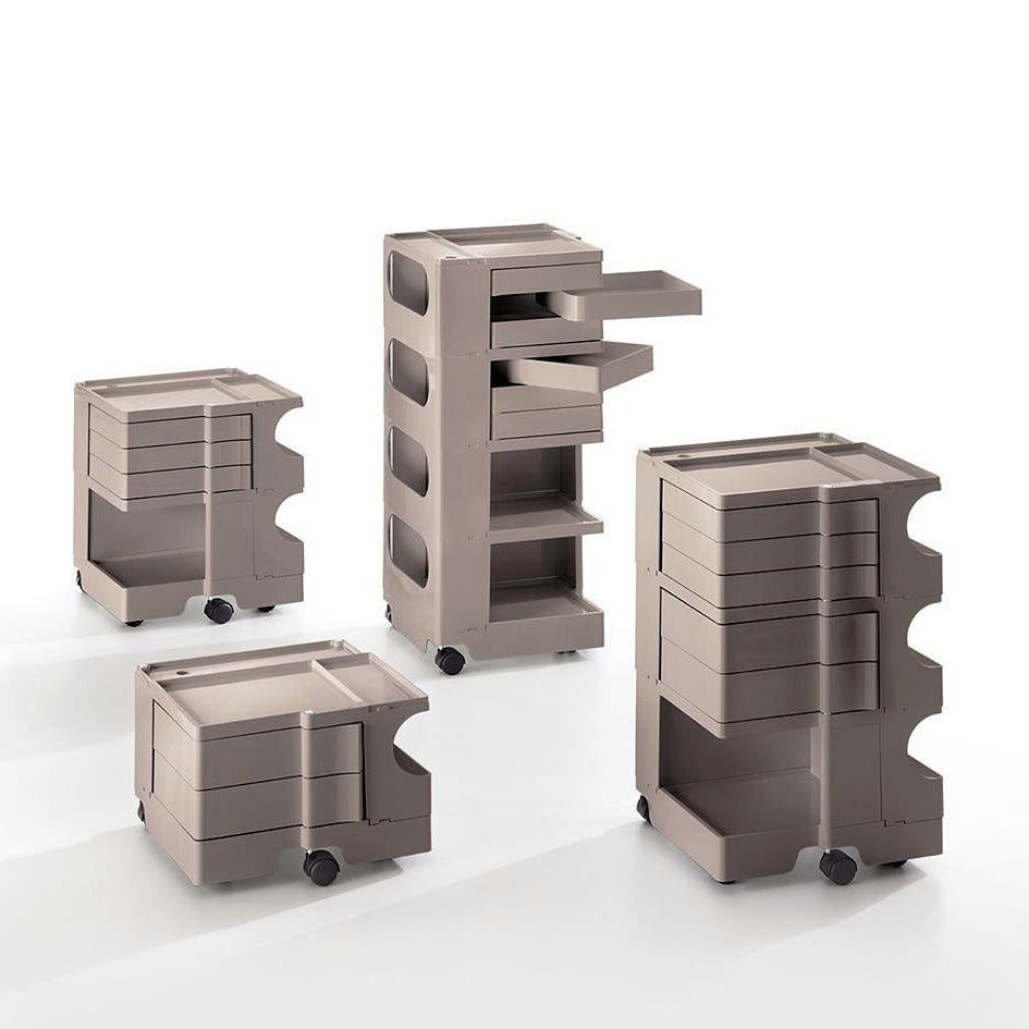 Boby is much more than a simple container: it is the trolley storage unit that made design history. Functionality and detail are its strong points which, together with an undeniably pop flavour, continue to make it the most popular storage trolley in creativity sectors as well as in the medical, and in the home. Designed with injection-moulded ABS plastic drawers and compartments that guarantee simple vertically modular solutions, Boby provides versatile customized storage capacity, while its polypropylene casters guarantee full mobility.