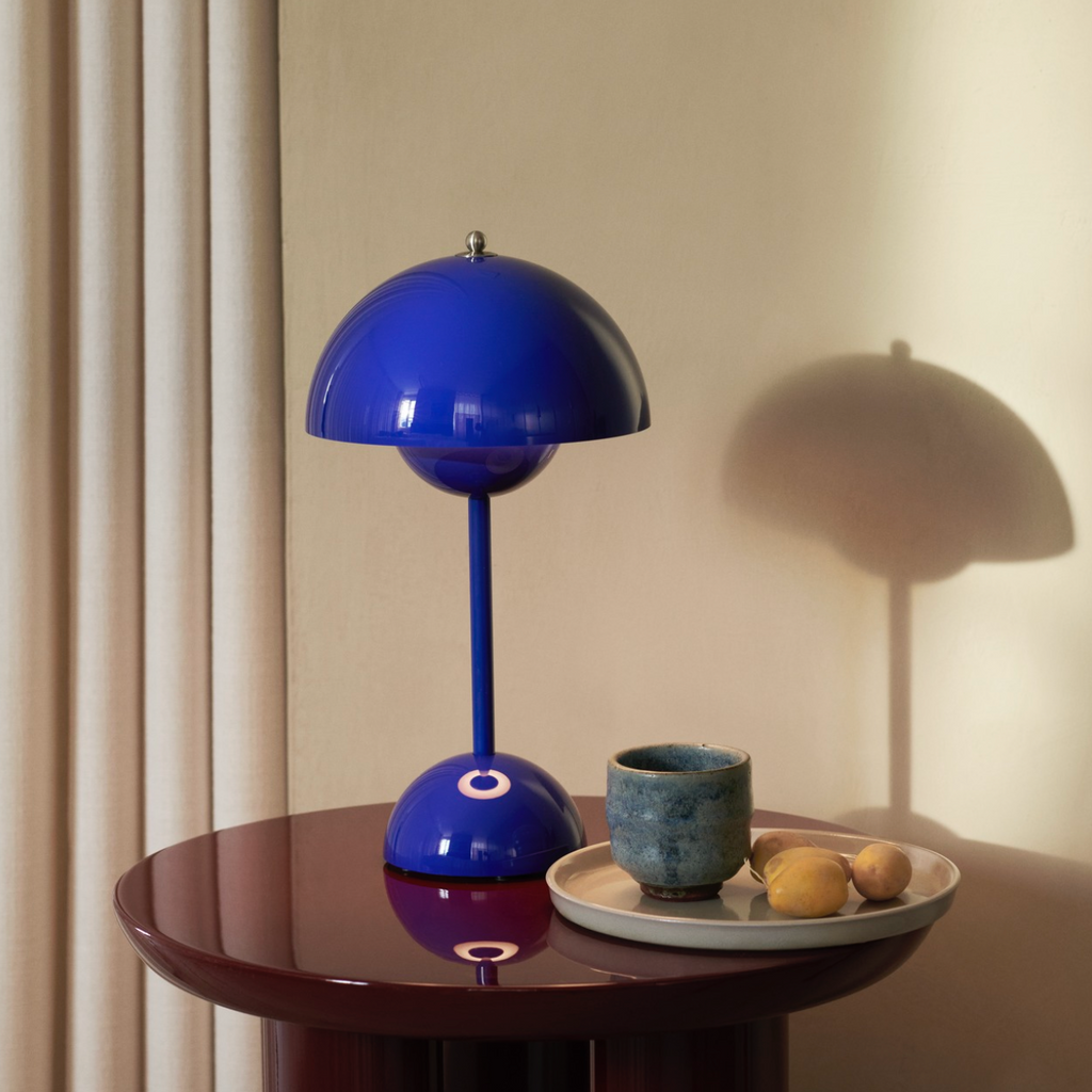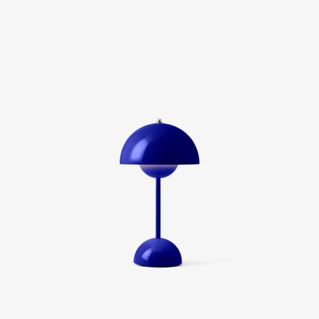 Reflecting the same iconic design as the Flowerpot table lamp, the petite proportions of the VP9 lamp have the added advantage of being mobile. The deliberately lightweight design and cordless feature allow the lamp to be easily moved from table to counter as needed.