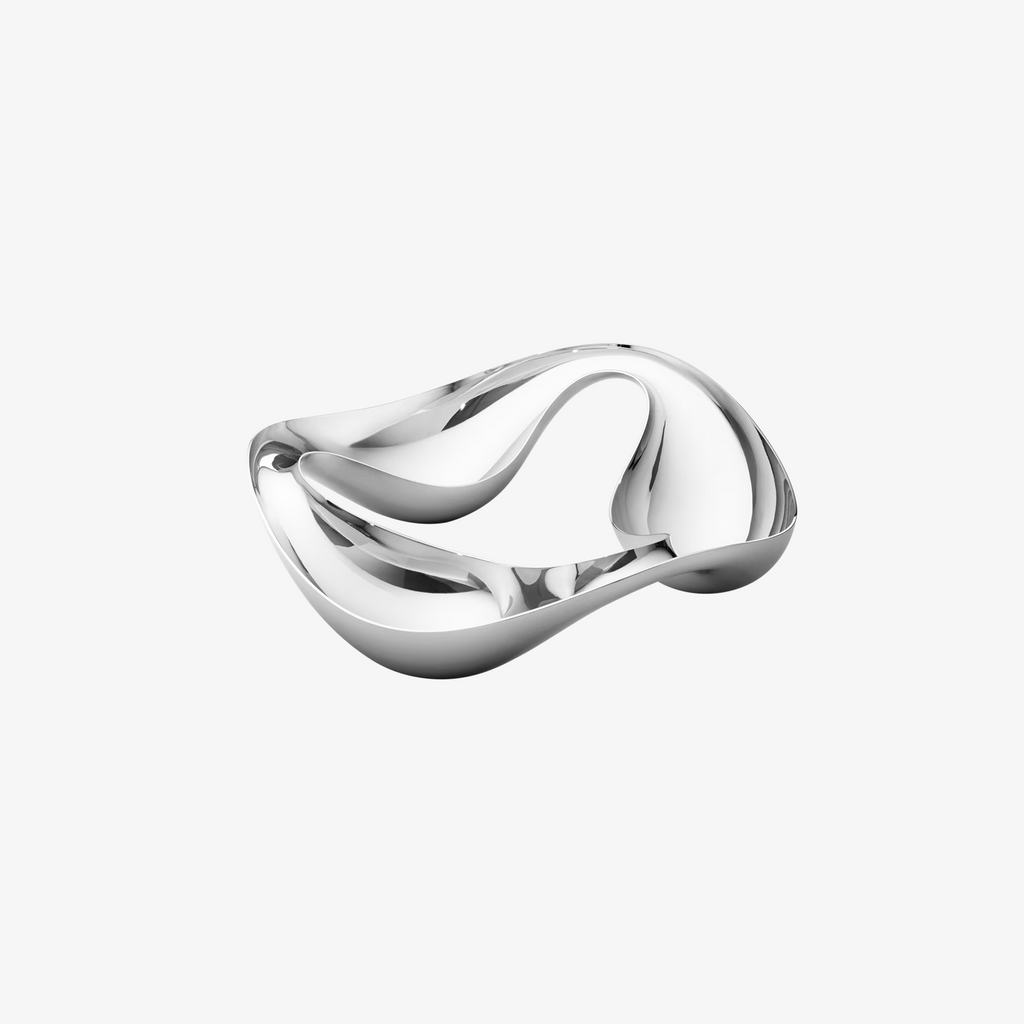 Seeming to almost capture movement, the striking organic shape of this stainless steel snack bowl makes it an eye-catching piece at any dinner party or social occasion. Flowing in a circular form that creates three distinct sections, the bowl forms a centrepiece that is perfect for serving nuts, dips, candies or other treats as it invites interaction and conversation.