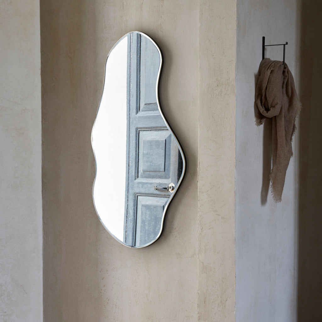 Material: Mirror glass. MDF backing with a dark chrome plated zinc frame