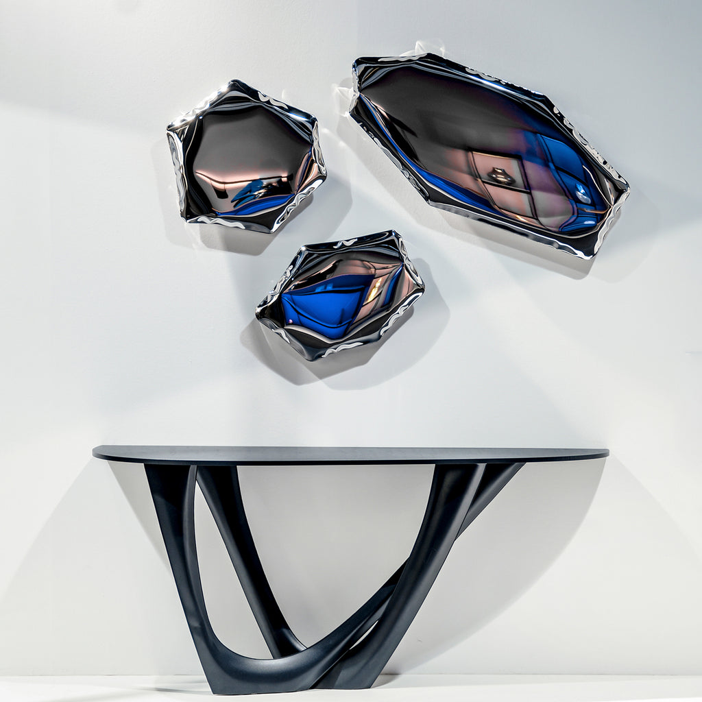 On the polished surface of the TAFLA mirrors, all steel refractions are perfectly visible – the artistic effect of “controlled loss of control” in the process of shaping their form.