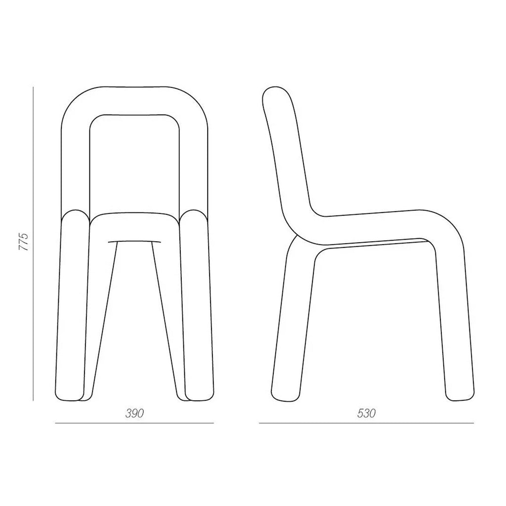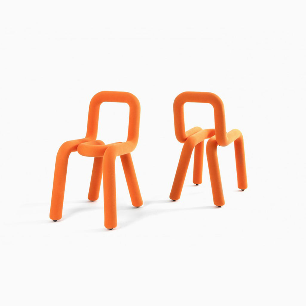 Made up of two tubular parts in metal embedded in each other, the Bold chair is an updated version of the tradition of a bended chair in tubular steel. Inflated with a thin polyurethane foam, the line drawn by the Bold successfully plays the role of foot, seat then back and gives it an amazing level of comfort. With a single stroke, in the manner of the Osvaldo Cavandoli Linea, and thickened similarly to the font which is made bold, the Bold chair succeeds in doing away with the seat and back.