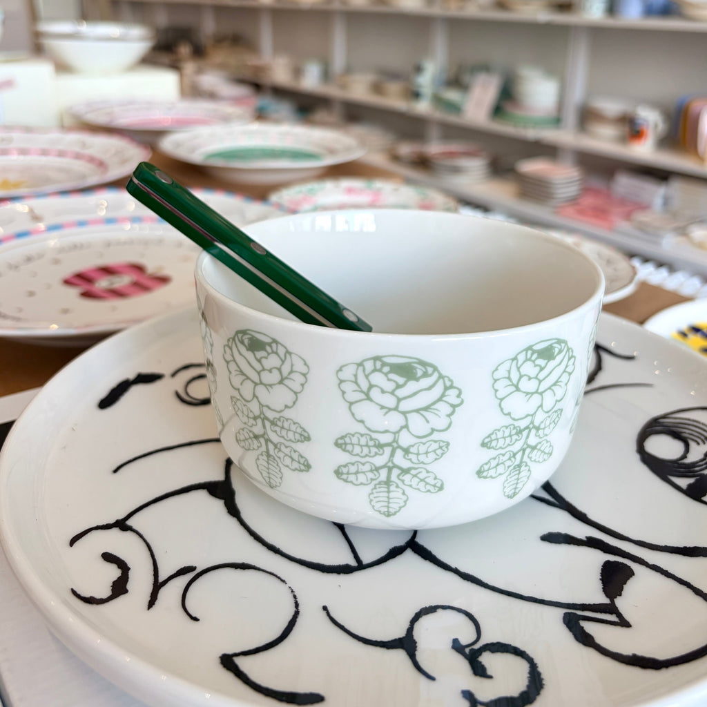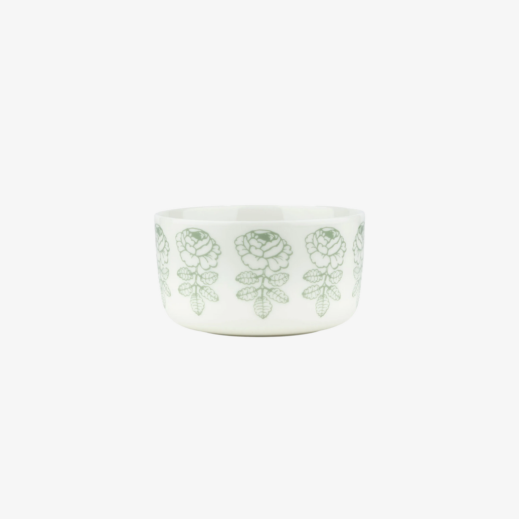 The Oiva bowl with Vihkiruusu pattern is made of white stoneware that is dishwasher, oven, microwave and freezer proof.