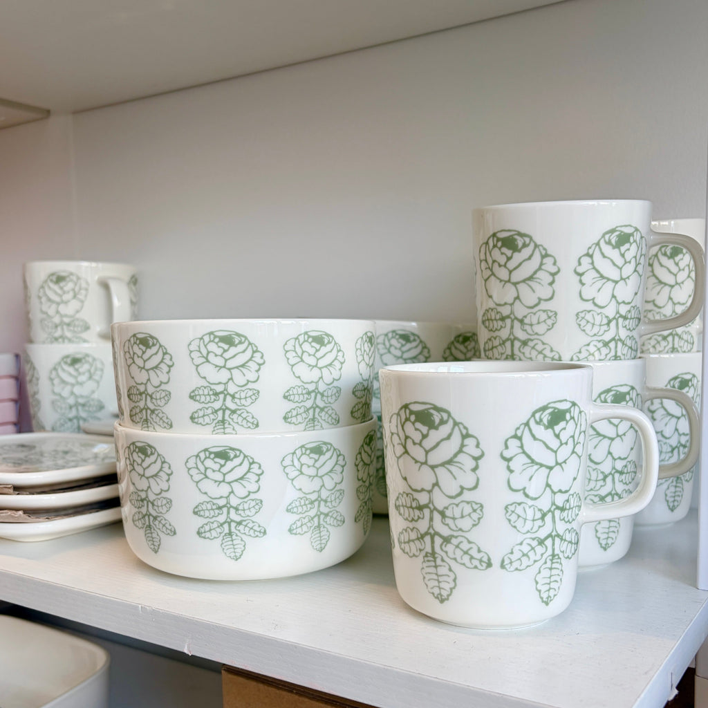 Vihkiruusu was born in a time when hardly any floral designs were included in Marimekko’s collections. Maija Isola, however, was fascinated by the theme of flowers and decided to create an entire range of novel floral prints. The iconic Unikko was one of the designs in that range along with Vihkiruusu.